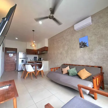 Το γραφικό Mi Tulum Aparthotel 4 αστέρων είναι περίπου 25 λεπτά με τα πόδια από τα Ερείπια των Μάγια του Tulum, παρέχει εξωτερική πισίνα και Wi-Fi σε όλο το κατάλυμα.